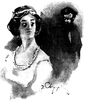 С большим трудом удалось мне и Уальду добиться приема. К нам вышла удивительно красивая девушка, несколько бледная, с большими грустными глазами. Во всех движениях ее чувствовалась усталость, как у человека больного или разочаровавшегося в жизни. Я решил приступить к делу прямо и объяснил цель нашего посещения. Эвелина выслушала рассеянно и, когда я кончил, долго молчала, играя кистью шелкового шнурка, охватывавшего ее талию. Девушка и одета была странно – в капот из китайской цветной материи.