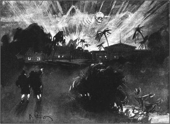 Электрическое солнце закатилось на западе. Эту бутафорскую штуку придумал помощник Уальда и она пришлась всем по вкусу: точно настоящее солнце.
