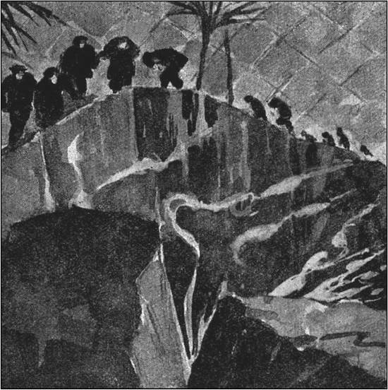 И колонистам опять показалось, что почва под ногами дрожит и двигается. Неуверенность в твердости того, что под ногами, создает особое настроение ужаса и толпа, увидав картину разрушения, шарахнулась и отхлынула подальше от края пропасти, которая, быть может, еще готовит неожиданности.