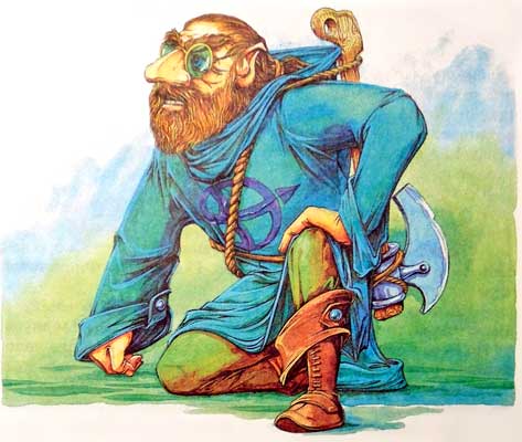 Однако до драки дело не дошло. Незнакомец откинул назад капюшон, и все увидели морщинистое, уродливое лицо гнома.