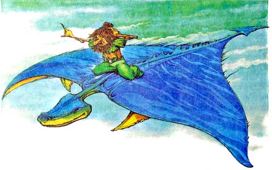Но тут им на помощь пришел Чангар. Он спикировал в мглистое облако и вскоре поднялся ввысь, держа в лапах огромную катапульту. На ней, визжа от страха, повисли несколько каббаров.