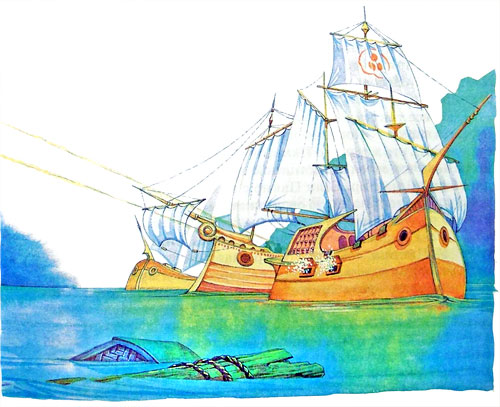 Вскоре в бортах обеих галер появились большие пробоины, и галеры стали тонуть.
