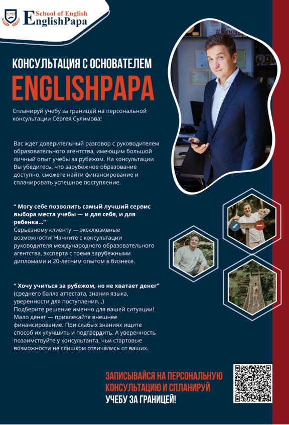 Мы убедились: построить подходящую образовательную траекторию, используя возможности мирового рынка образования, может любой дееспособный человек. Хотя делают это далеко не все. И я не говорю о людях, лишенных всяких карьерных амбиций. Как я убедился, некоторые не догадываются о перспективах, открываемых международным образованием. Другим же мешают рискнуть стереотипные взгляды на образование за рубежом.