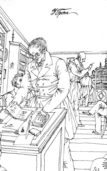 У Греча был собственный дом на набережной Мойки близ Почтамтского мостика, в этом доме хозяин устраивал приемы по четвергам. На приемах появлялись иногда серьезные писатели, но чаще – окололитературная братия, которая вилась вокруг Греча, ибо он издавал, вместе с Булгариным, журнал «Сын Отечества» и газету «Северная пчела». Десятки людей толпились каждый четверг в зале, где вдоль стен высились книжные шкафы, где зажигалось множество свеч в жирандолях и канделябрах и сам Греч вел разговоры о литературе, острил и казался душой общества.