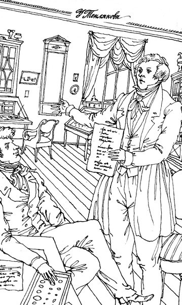 Запись в дневнике Александра Тургенева 24 февраля 1841 года: «У меня Тепляков, брат уехал в Шанрозе». Брат – это бывший участник «Союза благоденствия» Николай Иванович Тургенев. Тот самый, чей портрет в кругу декабристов набросал Пушкин в десятой (сожженной) главе «Онегина»: