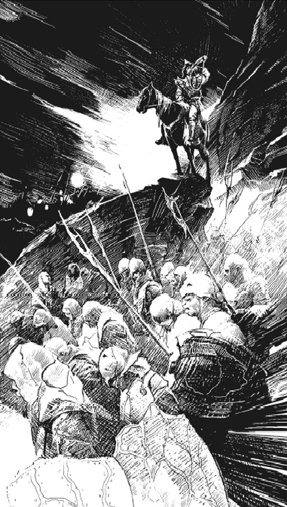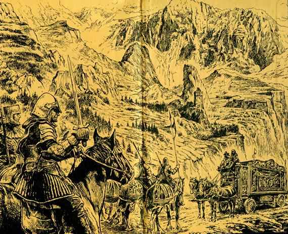 По узкой дороге, разрезающей заросшую бурьяном луговину на две неровные части, скакал закутанный в темное всадник. У него был крепкий конь, прикрытый спереди, с боков, сзади сыромятным доспехом. Поблескивала укрепленная на боку коня чудная пика с широким, словно черным лепестком наконечника и изогнутой серпом поперечиной. Что-то еще более диковинное висело на лошади с другой стороны. Всадник правил коня к проездной башне.