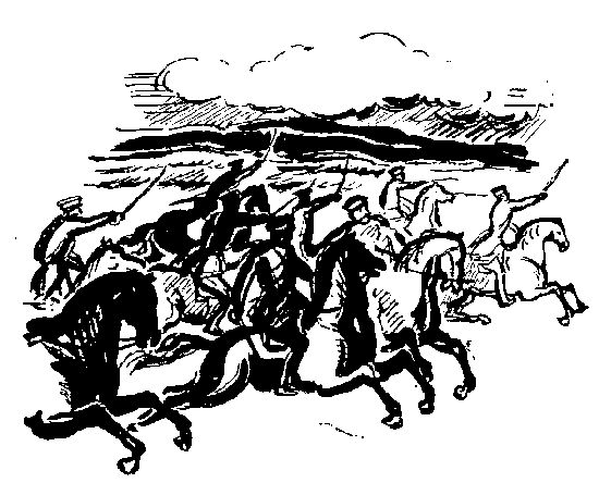 Первым, увлекая за собой всю массу красноармейцев, бежит высоченный командир полка, бывший слесарь, проявивший чудеса храбрости под Каховкой. Рядом с ним, не отставая ни на шаг, военком Гришак, особенно любезный красноармейцам за его острые, будоражащие речи, которыми он разгонял сомнения и тревоги уставших бойцов.