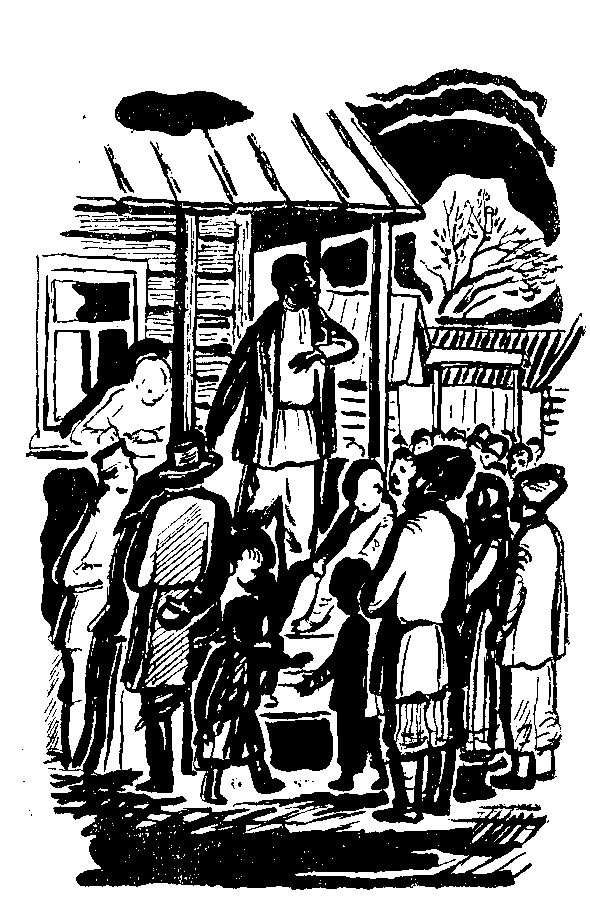 Потом, как бы двинутые ветром, все бросились на площадь к ревкому. Здесь на широком крыльце уже стоял стол, прикрытый красной холстиной. Крестьяне окружили крыльцо плотной стеной.