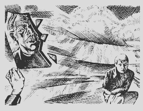 Володя, слыша, как зашуршали кусты за прятавшимся в укрытие Ленькой, сел на сухую траву нагретого солнцем спуска. Перед ним развернулась спокойная, мирная даль, которая казалась ему сейчас особенно притягательной, потому что там, сзади, таилась смертельная опасность. Именно сейчас он ясно понял: не будь заключенного позади него зла, он бы никогда не оценил прелести лежащего перед ним мира. Когда за его спиной раздался тихий хруст травы под чьими-то ногами, Володя не испугался. Он только напрягся и прижал подбородок покрепче к своей груди. Шаги приближались, и скоро шуршание травы, становившееся все громче, напоминало ему треск ломаемых бульдозером бревен. Но Володя был ко всему готов, поэтому, когда холодные пальцы, крепкие и жесткие, как клещи, сдавили ему шею, он, сопротивляясь всем телом чужой силе, не испугался. Он лишь ждал, когда раздастся взрыв…