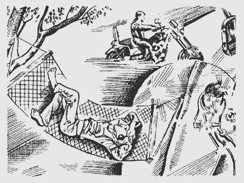Милиционер поднялся, стал застегивать сумку, а Кошмарик, успевший снова забраться в гамак, небрежно так спросил у него: