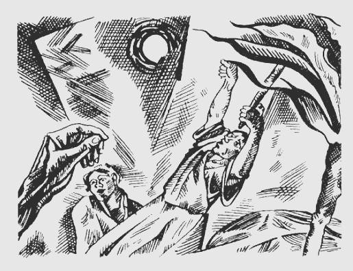 Если бы Кошмарик внимательно следил за том, как меняется выражение лица мастера, пока он говорил, то непременно приостановился бы, призадумался – а стоит ли продолжить? Володя видел, что мужчина вначале презрительно улыбался, потом его нижняя челюсть задрожала. Когда же Кошмарик закончил речь, мастер, весь дрожащий, с трясущимися губами и широко раскрытыми глазами, стал что-то быстро искать на столе. Володя на миг подумал было, не отыскивает ли он среди хлама «сестреции» или что-то другое, ценное, чтобы поскорее рассчитаться с наглым шантажистом. Но мужик наконец нашел то, что искал. Это были не монеты. Он схватил со стола электродрель с зажатым в ней большим сверлом. Она мигом зажужжала, и телемастер, кинувшись к Кошмарику, чтобы схватить его за шиворот, заорал: