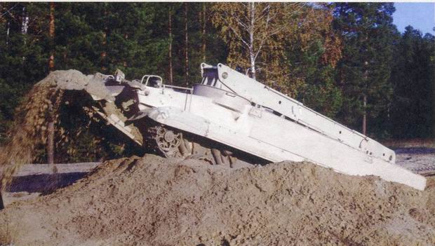 БРЭМ-Л «Беглянка» при работе бульдозерным оборудованием (фото КМЗ).