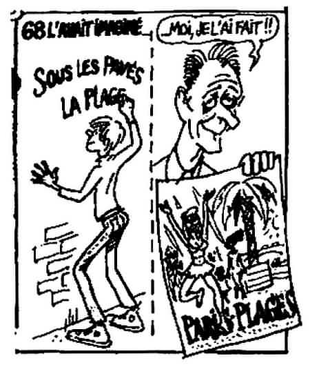 Действительно, вероятно, наиболее популярным изречением Мая 68-го стал лозунг: «Под мостовыми – пляжи!» Мостовая, брусчатка здесь символизирует порядок, поскольку брусчаткой до сих пор вымощены парижские улицы. Но мостовые и в самом деле кладутся на слой песка, и когда их стали разбирать на баррикады или на «снаряды» против полиции, на поверхность вышел песок… Кроме указания на материальное расположение песка под слоем брусчатки, этот лозунг сам по себе прекрасно резюмирует множественные перевороты и трансформации, произведенные Маем 68-го.