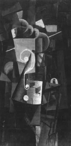 [Закрыть]) движение передано повторением одной формы рядом с другой в плоскости прохождения двигавшегося предмета. В других картинах, непосредственно следовавших за моими кубистическими вещами, движение передавалось как распад, разложение формы видимых предметов.(Бурлюк 1994:140)