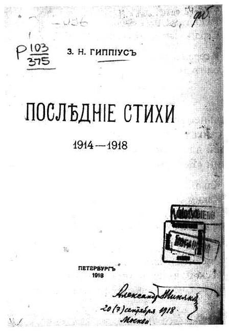 на книге Зинаиды Гиппиус «Последние стихи» (1918)