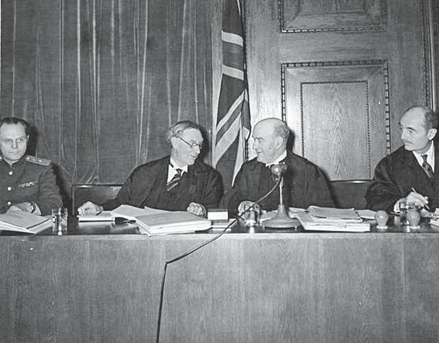 Председателем трибунала на единственном заседании в Берлине был выбран англичанин Джеффри Лоуренс. Он же прибыл и в Нюрнберг.