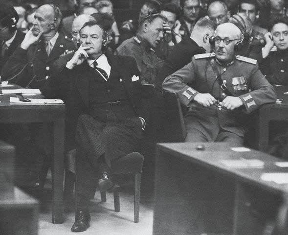Илья Эренбург в зале заседаний Международного Военного Трибунала на Нюрнбергском процессе