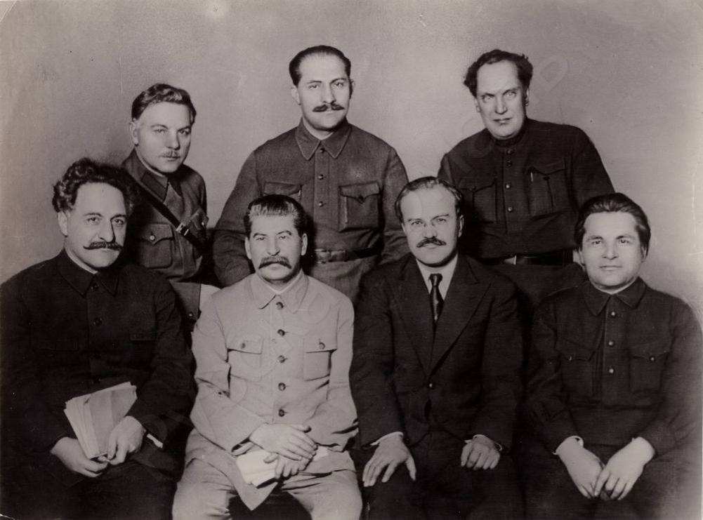 Рисунок 1. Команда И.В. Сталина «первого состава». Слева направо: Орджоникидзе, Ворошилов, Сталин, Каганович, Молотов, Куйбышев, Киров.