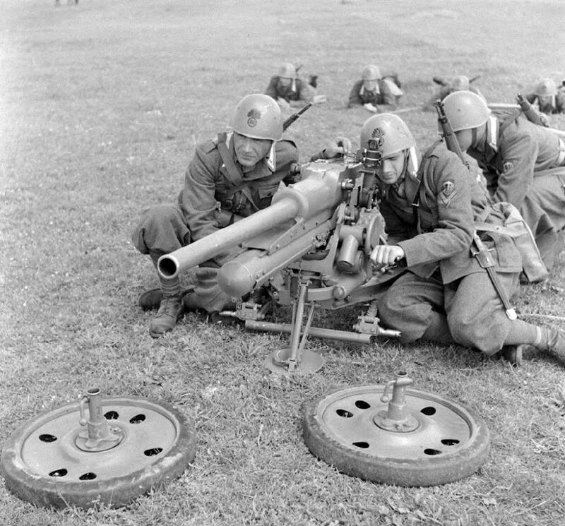 Рисунок 33. Бравые итальянские противотанкисты и австрийская 47-мм противотанковая пушка «Böhler» M35.