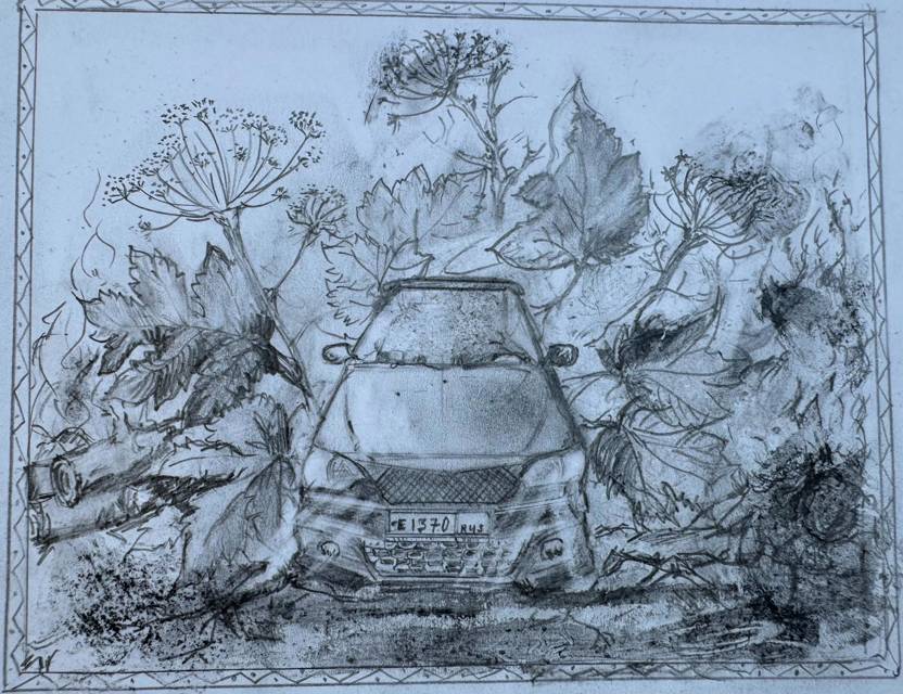 Несчастный «логан» Алекса напоминал змеиное гнездо. Только вместо змей – еще тлеющие стебли борщевика. Проклятое растение оплело колеса, ввинтилось под капот и в багажник, расплавило стекла, продавило крышу и заполнило салон вонючим дымом. На землю уже капало темное и не менее пахучее. Свежий борщевик подпирал сзади, перебирая корнями по обочине и избегая кусков старого асфальта.