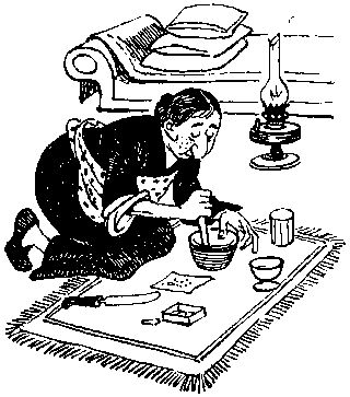 Врач поспешил к больной и увидел что-то странное. На кровати лицом вниз лежит женщина, ее трясет лихорадка. Ниже колена у больной видна рана. Видна потому, что она откинула правую ногу в сторону. Рана была намазана какой-то черной зловонной мазью.