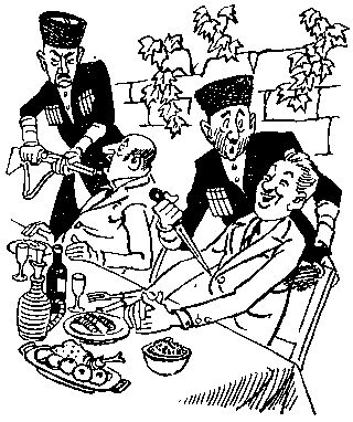 Однажды вечером мой друг готовил во дворе ужин. Винтовка лежала позади него. Я, ничего не говоря, взял ее и унес в дом. Вокруг бегали дети, и я боялся, что кто-нибудь заденет ружье и оно выстрелит. Мы стали ужинать. Только протянули руки, чтобы взять первый кусок, как на скатерть легли тени. За нашими спинами стояли два вооруженных лезгина с мрачными лицами. Один направил винтовку на хозяина, а другой приставил кинжал к моей груди. Мой друг быстро повернулся, шаря рукой по земле.