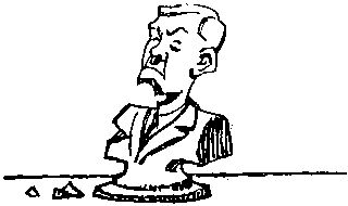 Присутствующим представился бюст юбиляра, слепленный из гипса. Линия подбородка, переходившая в адамово яблоко на шее бюста и напоминавшая форму большого вопросительного знака, удачно выражала сходство с аналогичной линией на лице товарища Ногталарова. Зал не мог удержаться и разразился веселым смехом и аплодисментами.