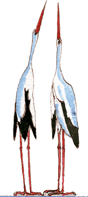 Калиф изображал, как визирь-аист расхаживал на своих длинных-предлинных ногах, размахивал крыльями и бормотал:
