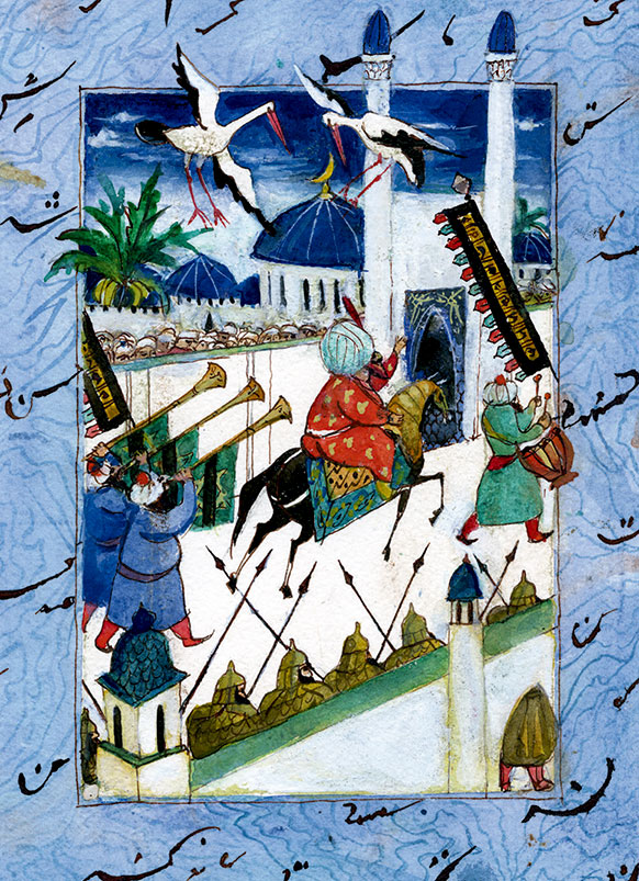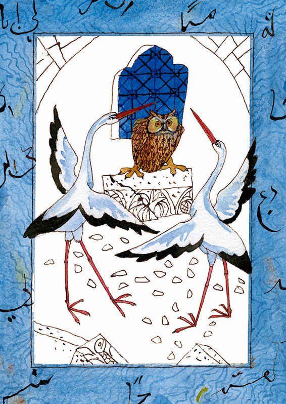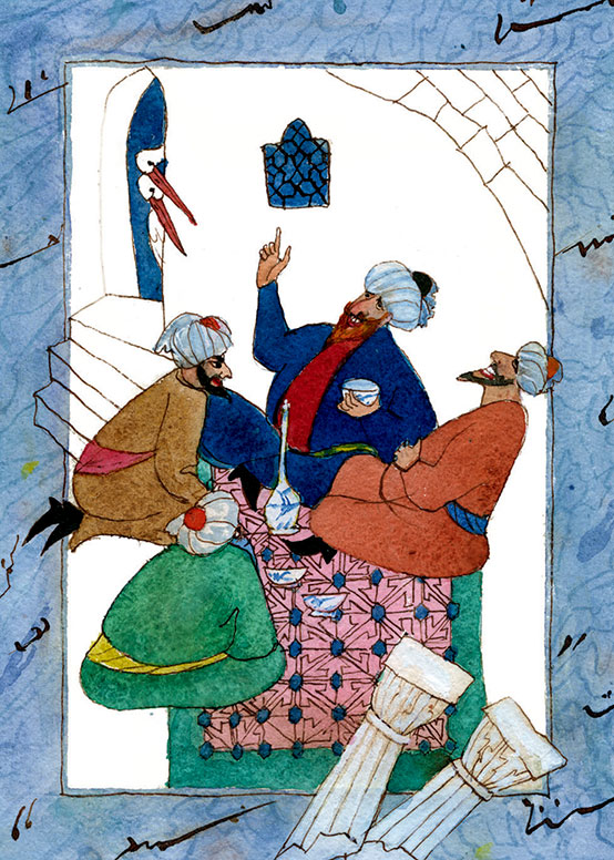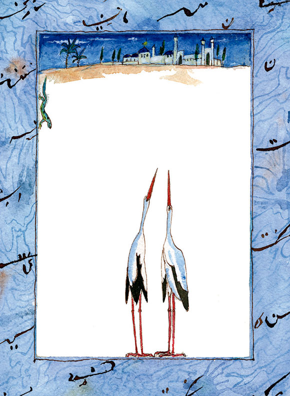 – Господин! На прудах я видел аистов. Забавные птицы! Они всё время болтают что-то на своем птичьем языке. Может, мы попробуем наш порошок и послушаем их, – предложил визирь.