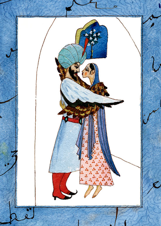 И тут же исчезли клювы и перья, ноги их стали такими, как всегда, вместо крыльев вновь появились руки. Колдовские чары были разрушены! От радости визирь и калиф бросились обнимать друг друга, начали смеяться и дергать друг друга за бороды. И чуть не забыли про Сову. Наконец они обернулись и увидели… Кого же? Не уродливую птицу с круглыми глазами, а прекрасную молодую девушку – красавицу принцессу.