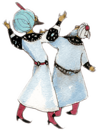 Но сколько они ни повторяли это слово, чары не исчезали. Они перепробовали все слова: и «муртурбор», и «мурбутур», и «мурбуртур»… Волшебное слово стёрлось из их памяти. Калиф и его визирь по-прежнему оставались аистами.