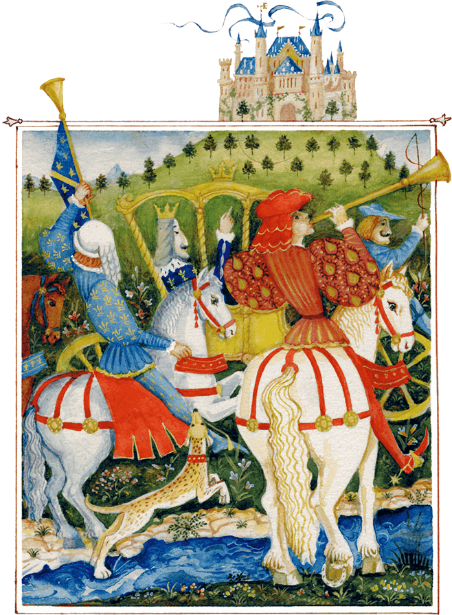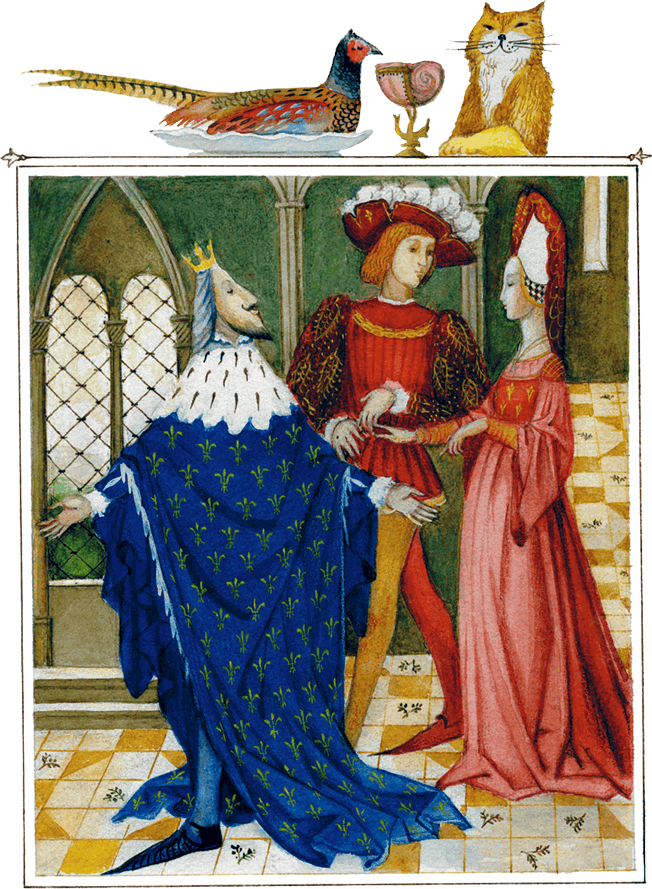 Тем временем король, проезжая мимо, заметил по пути прекрасный замок и пожелал войти туда.