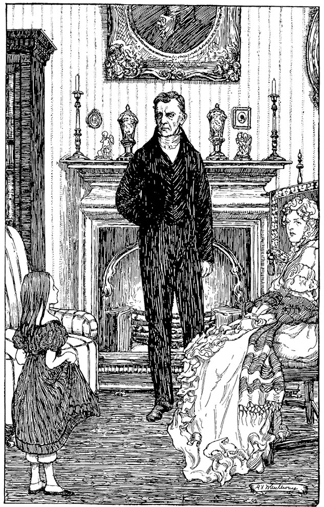 Произнеся эти слова, я посмотрела вверх. Он показался мне очень высоким джентльменом, но ведь я и правда была маленькой. Крупные черты лица, как и очертания его фигуры, выглядели равно суровыми и чопорными.