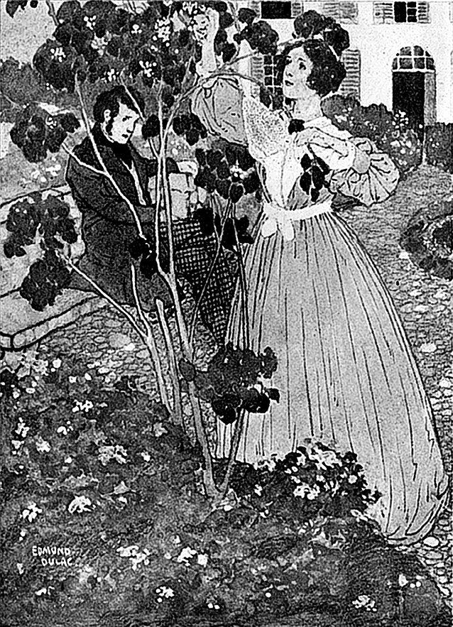 Окно мое смотрело прямо на любимую аллею м-ль Рюте, «l’allée défendue»[161], как ее называли, потому что пансионеркам воспрещалось там гулять по причине ее близкого расположения к школе для мальчиков. Здесь сирень и золотой дождь разрослись особенно густо, образуя самый укромный уголок сада и скрывая скамейку, где совсем недавно сидел я подле молоденькой директрисы.