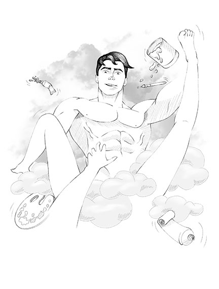 Он приподнял меня, одаривая лихорадочным поцелуем, мои ноги инстинктивно обхватили его торс. Неся меня одной рукой, он одним движением опрокинул всё, что было у него на столе. Стаканы, в которых лежали кисти, разбились о пол, и несколько тюбиков с краской пролились на стол. Что же касается клочков бумаги, то они облетели нас прежде, чем гравитация вернула их обратно на пол.