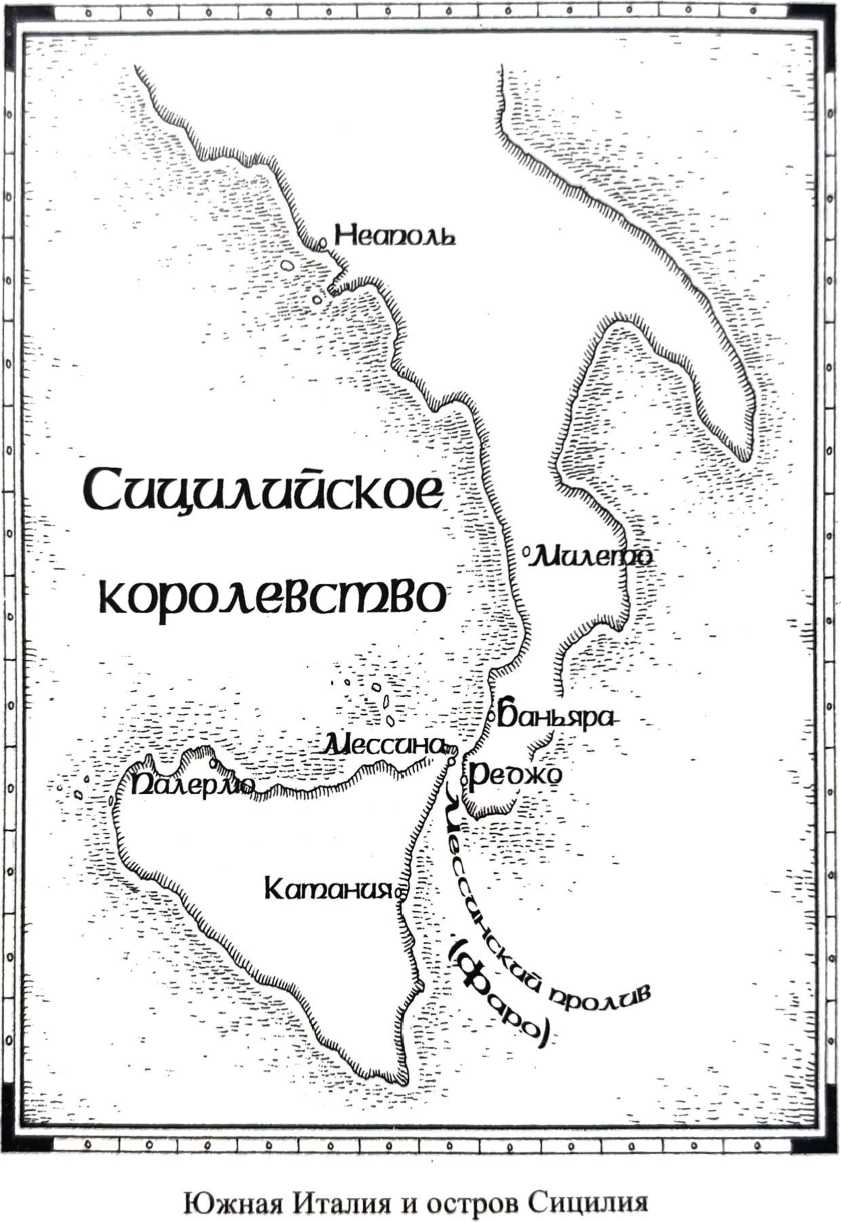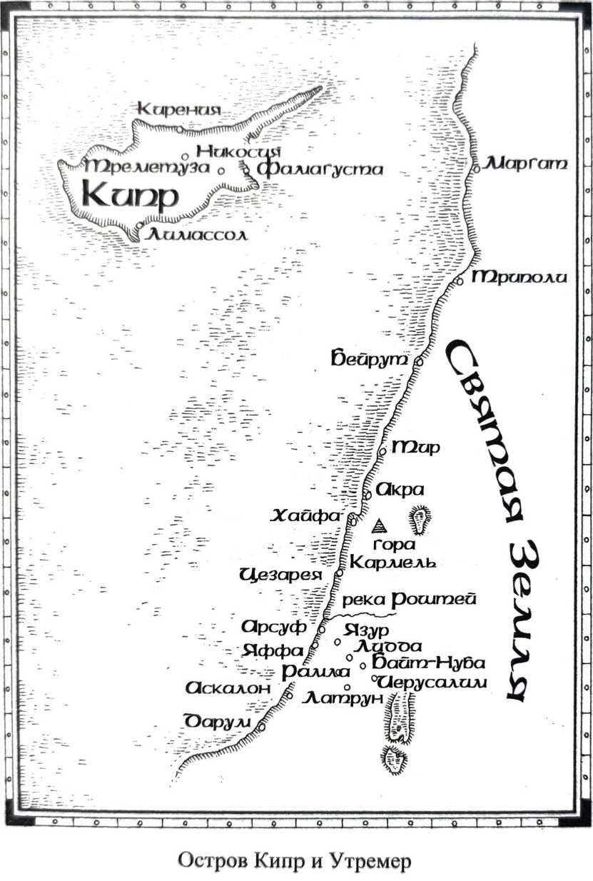Ричард, Лузиньяны и рыцари поспешили на палубу и застыли в изумлении, потому как и из них никто подобного корабля никогда не видел. Он был огромный, раза в два с лишним крупнее самого большого буса, с тремя высоченными мачтами. Борта его были задрапированы зеленой и желтой тканью, придавшей судну странный, экзотический облик. А по мнению Ричарда, еще и подозрительный, потому что флага на нем не было. Окликнув шкипера соседней галеры, король поручил ему выяснить принадлежность загадочного корабля. Галера вскоре вернулась, шкипер доложил, что по словам экипажа судно французское, держит путь из Антиохии к Акре.