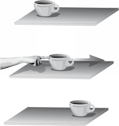 Экстраполируя эти наблюдения, Аристотель решил, что можно вывести основное правило вселенной: объекты естественным образом находятся в состоянии покоя, а движутся только тогда, когда что-то выводит их из этого состояния. Во многих случаях это правило действует. Например, стоящая на столе чашка не будет двигаться сама по себе. Мы можем переместить ее, приложив небольшое усилие, но стоит убрать руку, как чашка снова окажется неподвижной.
