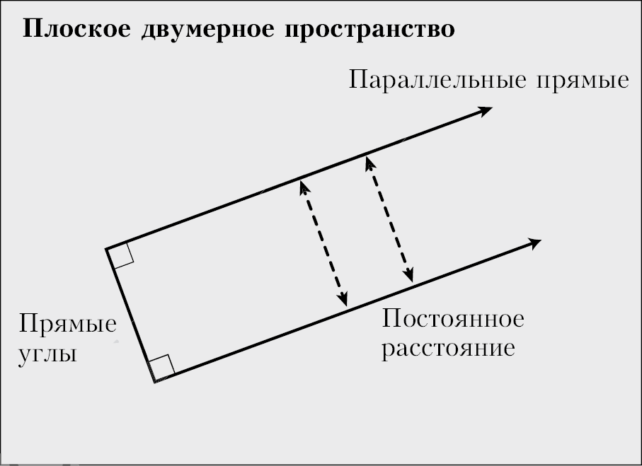 По большей части аксиомы Евклида – это разумно звучащие утверждения, которые имеют смысл как основы для геометрии. Взять, например, «между любыми двумя точками можно провести прямую» или «все прямые углы равны». Но есть одна, которая всегда выделялась на фоне других. Это так называемый пятый постулат Евклида – аксиома параллельности. Если построить на плоскости две изначально параллельные прямые, например проведя их через концы какого-то отрезка под прямым углом к нему, эти прямые всегда будут отстоять друг от друга на одинаковое расстояние. (На самом деле Евклид сформулировал свой постулат так: «И если прямая, падающая на две прямые, образует внутренние и по одну сторону углы, меньшие двух прямых [углов], то, продолженные неограниченно, эти прямые встретятся с той стороны, где углы меньше двух прямых».)