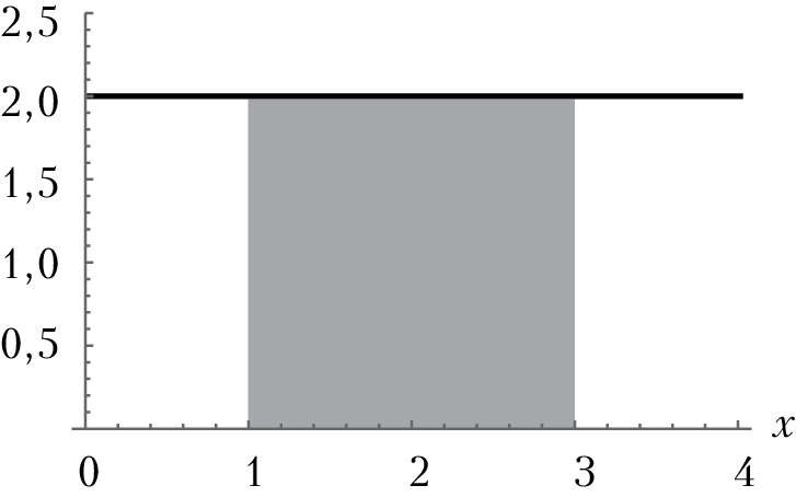 В этом легко убедиться, посмотрев на следующий рисунок. Здесь c = 2, a = 1, а b = 3. Площадь под кривой составляет 2 × (3–1) = 4, чего и следовало ожидать.