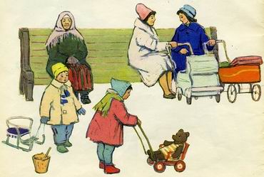 Днём Чинара повела бабушку в сквер около дома. Там она, как всегда, играла с киргизскими и русскими ребятами. А бабушка сидела на скамейке и смотрела на ребят. Играть бабушка не умеет, да и старенькая она.