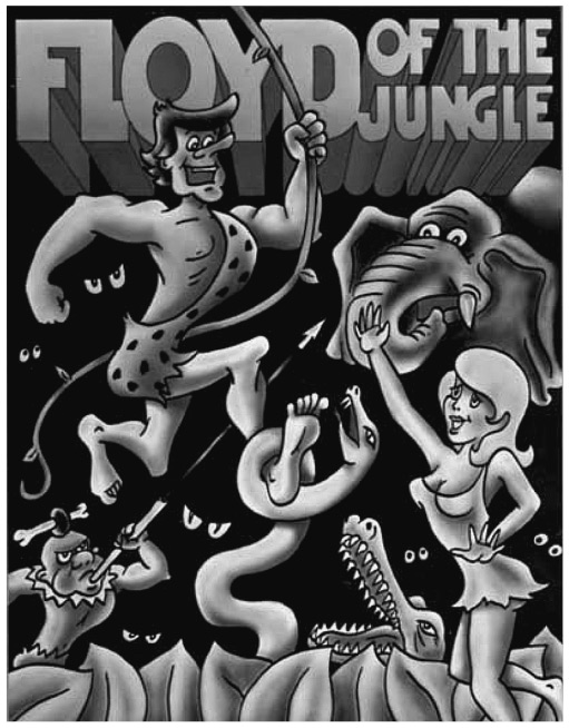 Floyd of the Jungle вместила в себя сразу несколько передовых приемов. Помимо возможности играть вчетвером на одном экране, в игре была использована новая технология прорисовки анимации: два немного отличающихся друг от друга изображения персонажа поочередно сменяли друг друга. В самой успешной игре того года – Space Invaders – этот подход был использован для отображения шести типов инопланетян: каждый из них шевелил конечностями, и при анимации это изображалось либо в виде замкнутого цикла движений, либо в виде постоянной смены двух позиций от одной к другой. Но я чувствовал, что потенциал этого приема далеко не исчерпан, и хотел проверить, как много движущихся всеми возможными способами существ мне удастся разместить на экране с помощью программного кода. Тему инопланетян уже использовали, так что в качестве заднего фона я выбрал джунгли. Лишь после этого я вспомнил, как бесчисленное количество раз смотрел по утрам в воскресенье многосерийный мультфильм «Джордж из джунглей». На ранних этапах моей карьеры тематика игры отходила на второй план, куда важнее были технические приемы: я делал исключительно игры для компьютера, а не игры, которые при необходимости можно на нем запустить. Разумеется, при этом мне хотелось использовать в разработке любую доступную на тот момент техническую возможность.