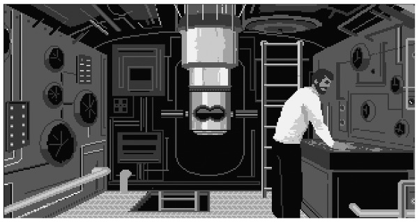 Если честно, меня это немного задело. Конечно, до Ван Гога мне было далеко, но к тому моменту я вот уже несколько лет рисовал все иллюстрации для наших игр, и, по моему мнению, получалось у меня вполне неплохо – по крайней мере, более чем прилично для 16-цветной спрайтовой графики. Я был настолько хорош, что мне даже не нужно было предварительно размечать свои рисунки на миллиметровке, как это делали многие другие. Я просто рисовал картинку в уме и сразу переносил ее в компьютер. Особой моей гордостью было графическое меню, которое я нарисовал для Silent Service: вместо того чтобы выбрать какие-нибудь предметы, относящиеся к работе капитана, – радар, перископ, донесения о повреждениях и т. д. – я изобразил полноэкранный вид интерьера боевой рубки и маленькую (предположительно) человеческую фигурку, которая могла двигаться между разными зонами комнаты. Да я и впрямь был чертовски хорош!
