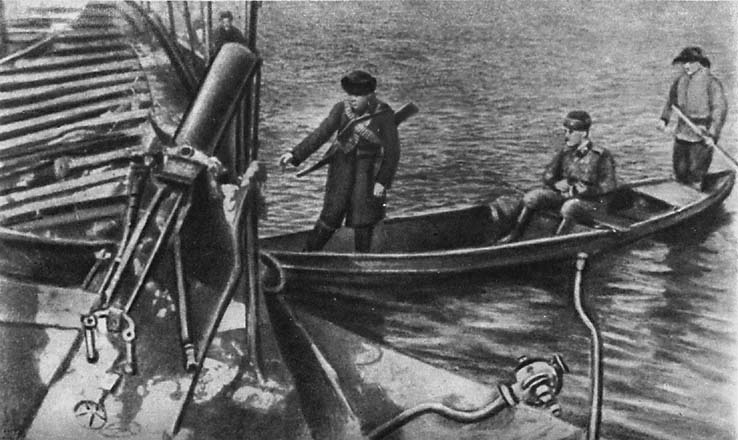 С головным пароходом, севшим на мель, пришлось повозиться дольше. Течение повернуло его носом к берегу, так, что снаряды плохо ложились – скользили по бортовой броне. Артиллеристы решили переменить позицию. Тут несколько горячих голов не утерпело – вскочили на лодки и поплыли к пароходу, заходя к корме. Немцы открыли по ним огонь, но высовываться боялись, стреляли через иллюминаторы, вслепую, вдоль бортов. Поднявшись на палубу, партизаны стали прошивать её огнём из стоявшего тут же немецкого крупнокалиберного пулемёта. Немцы из трюма тоже ответили пальбой сквозь палубу. Артиллеристы тем временем, переменив позицию, возобновили обстрел парохода. Партизаны вернулись на берег. По палубе дым повалил. Вдруг на берегу слышат, что кто-то кричит из клубов дыма: