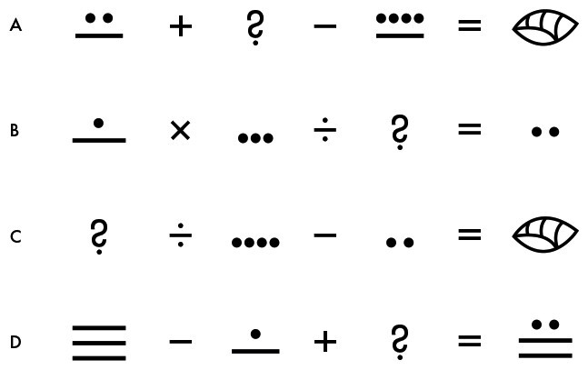 Какие символы майя нужно вставить вместо вопросительных знаков, чтобы получились верные ответы?
