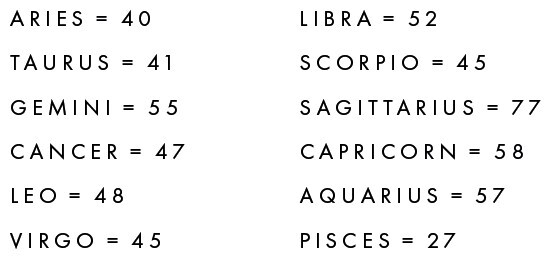 Взгляните на названия знаков зодиака, которые записаны при помощи 17 букв алфавита. Каждой из этих букв было присвоено число от 1 до 17. Цифры после знака равенства – это сумма числовых значений всех букв слова. Взломайте этот шифр, чтобы понять, какие цифры стоят за буквами. Затем расшифруйте инструкцию ниже.