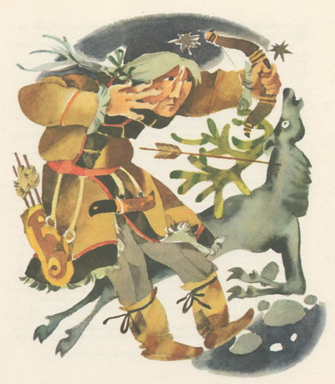 – Твоего, росомаха, угощенья ждать – с голоду умрёшь, – сказала Мааны. – За то, что семь дней пропадала, пусть потомки твои по семь дней добычу выслеживают, пусть никогда они не наедаются досыта, пусть едят с голоду всё, что придётся…