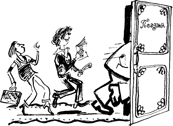Прослыть поэтом приятно и почетно. Вот почему по редакционным коридорам бродят тоскливые стайки пришлых людей со стихами за пазухой. Их мечта и цель – просунуть в печать свои рифмованные творения (иногда не свои). Еще не признанные миром гении тычутся не в те двери, пока их наконец не посылают по верному адресу – к литсотруднику, специально натасканному отличать чистые бриллианты поэзии от графоманских стекляшек.