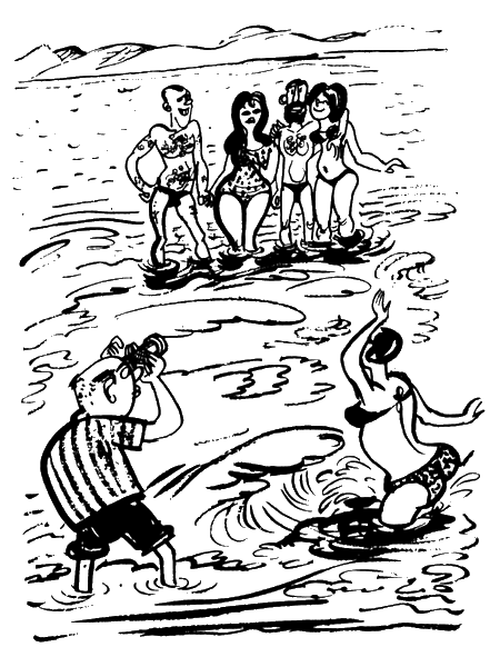 Моя давняя знакомая Матильда Витальевна поступает наоборот: сначала она отправляется на дикий пляж, где жарится до того, что в воздухе густо пахнет жареным и хочется забить тревогу: вызвать пожарную команду. Лишь после этого Матильда Витальевна перебирается на лечебный пляж и доверяет дальнейший загар медицинскому контролю.