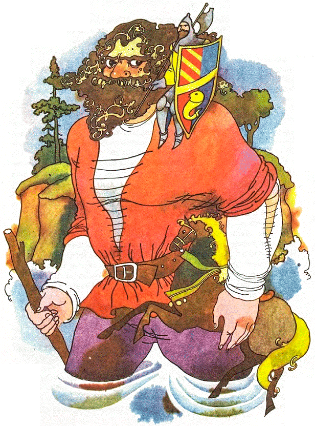 Но не успели отбежать и на три поля, как оглядываются и видят: мчится за ними во весь опор великан.