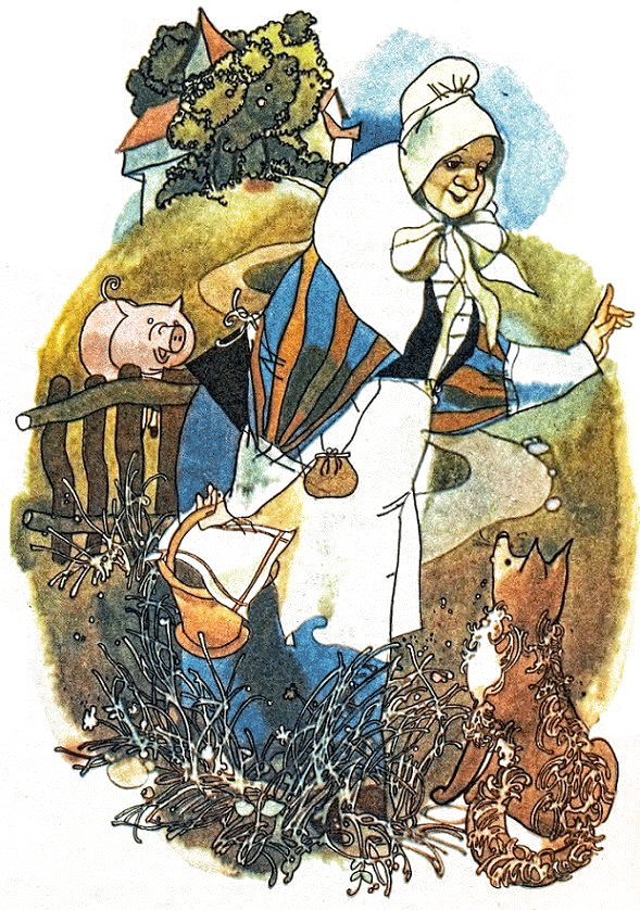 – Что бы мне такое купить на него? – подумала старушка. – Пойду-ка я на базар и куплю там поросеночка.